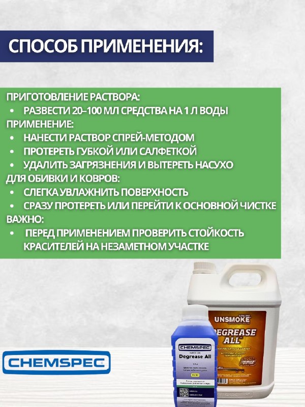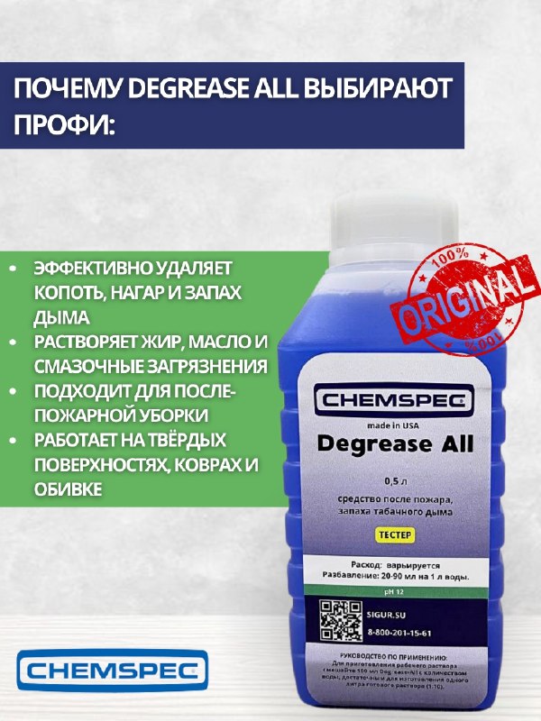 Chemspec: Degrease All 0,5л ср-во после пожара, запаха табачного дыма