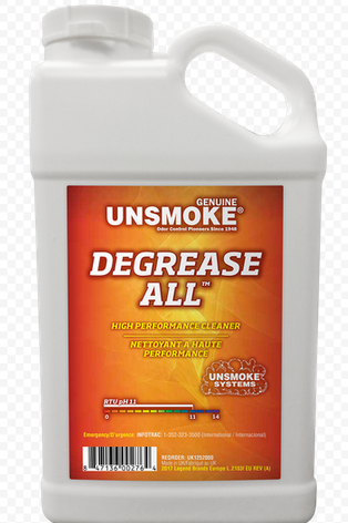 ОБЛАСТЬ ПРИМЕНЕНИЯ: Высокоэффективный, универсальный очиститель нагара, копоти и масляного налета. Degrease-All содержит водорастворимые сольвенты (растворители), замедлители коррозии, грязеразщепляющие и жирорастворяющие вещества, высокощелочные вещества.РУКОВОДСТВО ПО ПРИМЕНЕНИЮ: Для приготовления рабочего раствора смешайте 100 мл Degrease-All с количеством воды, достаточным для изготовления одного литра готового раствора (1:10).