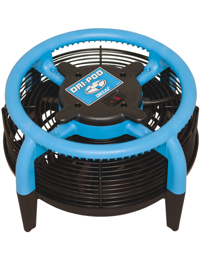 Dri-Pod втягивает воздух сверху и направляет его вниз через решетку на 360 градусов по всему полу. Легко и быстро.
