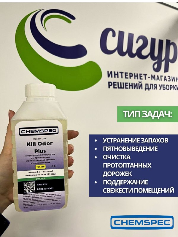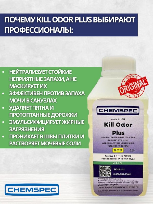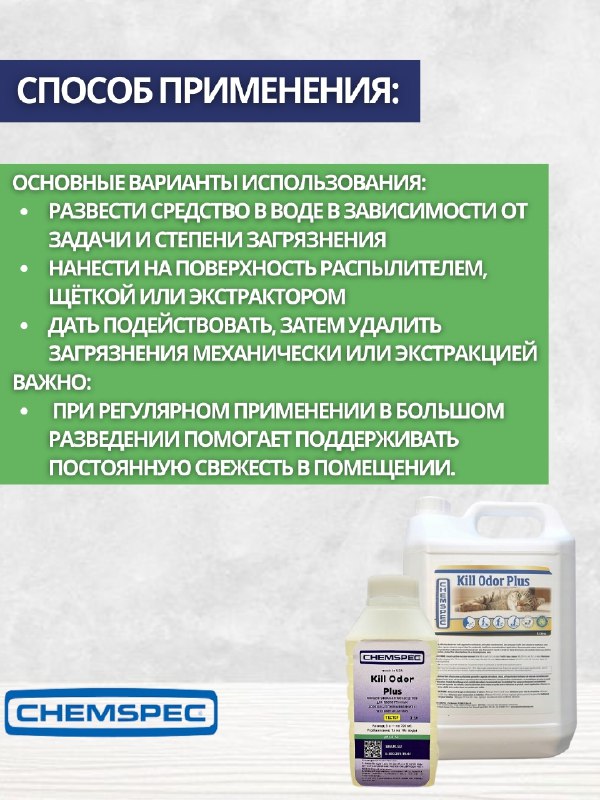 Chemspec: Kill Odor Plus 0,5л устранитель неприятных запах. и пятен от их источников, ср-во для сан.(фасовка)