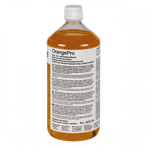 OrangePro - специальное, содержащее растворитель (терпен) средство предназначено для удаления растворяемых растворителем загрязнений органического происхождения (например, смолы, дёгтя, воска, масел, краски, лаков, клея и т.д. OrangePro применяется только для локального удаления сильных загрязнений, не удалившихся ранее средствами на основе воды.
