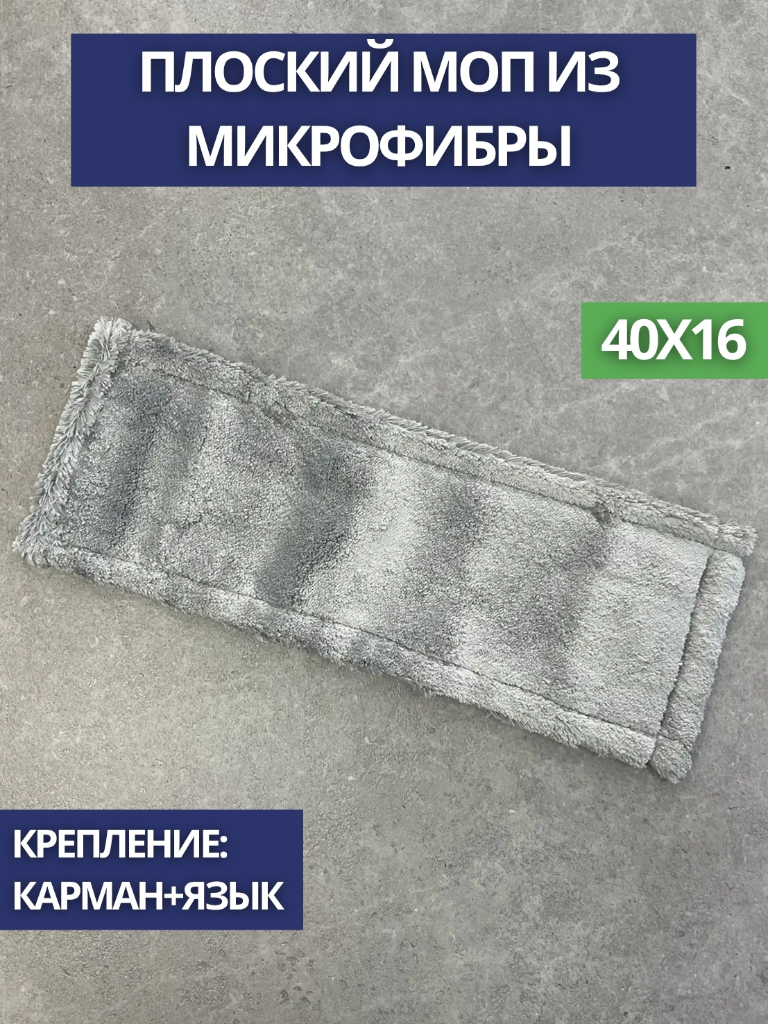 МОП плоский - микрофибра, серый 40см, ухо+карман 25шт/уп