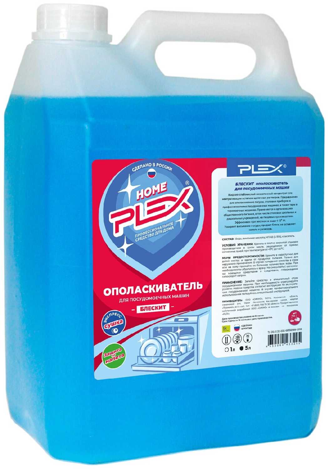 PLEX: Блескит ополаскиватель для посудомоечных машин 5л.