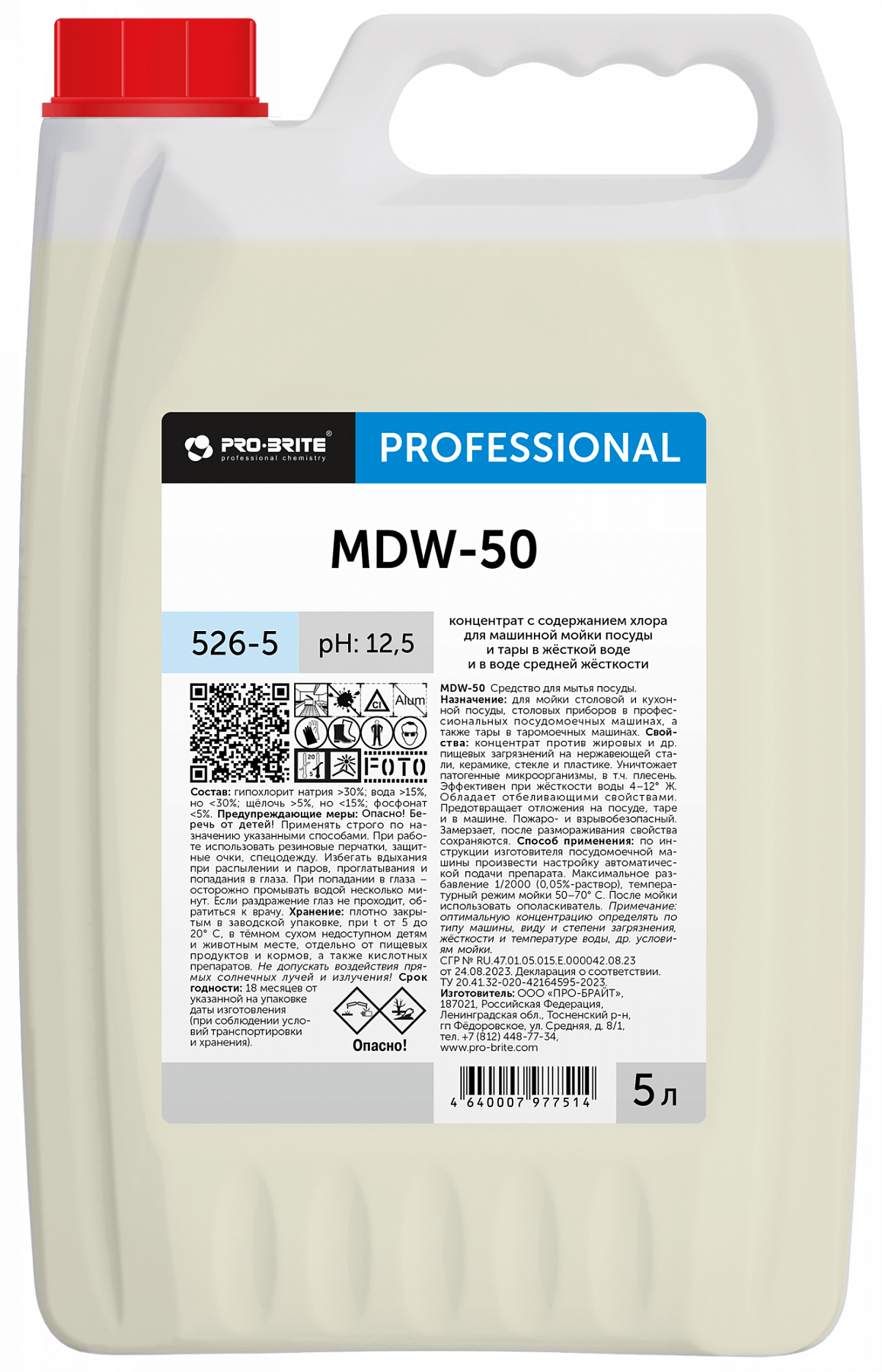 Pro-Brite: MDW-50 Концентрат для машинной мойки посуды 5л/4шт.кор