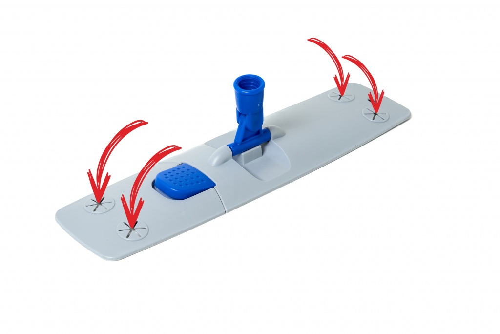 С держателем совместимы салфетки тканные и не тканные размером 46х20 см. Для фиксации салфеток необходимо закрепить края салфетки в четырех фиксаторах держателя. Салфетками хорошо подметать пол или собирать загрязнения, которые в дальнейшем можно выбросить вместе с салфеткой.