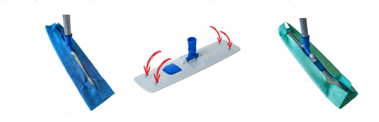 Держатель совместим с насадками Росмоп "С" - серии. К стандартным позициям доступны и профессиональная серия с абразивным эффектом, подметальные и другие насадки.Также с держателем совместимы салфетки тканные и не тканные размером 46х20 см. Для фиксации салфеток необходимо закрепить края салфетки в четырех фиксаторах держателя. Салфетками хорошо подметать пол или собирать загрязнения, которые в дальнейшем можно выбросить вместе с салфеткой.
