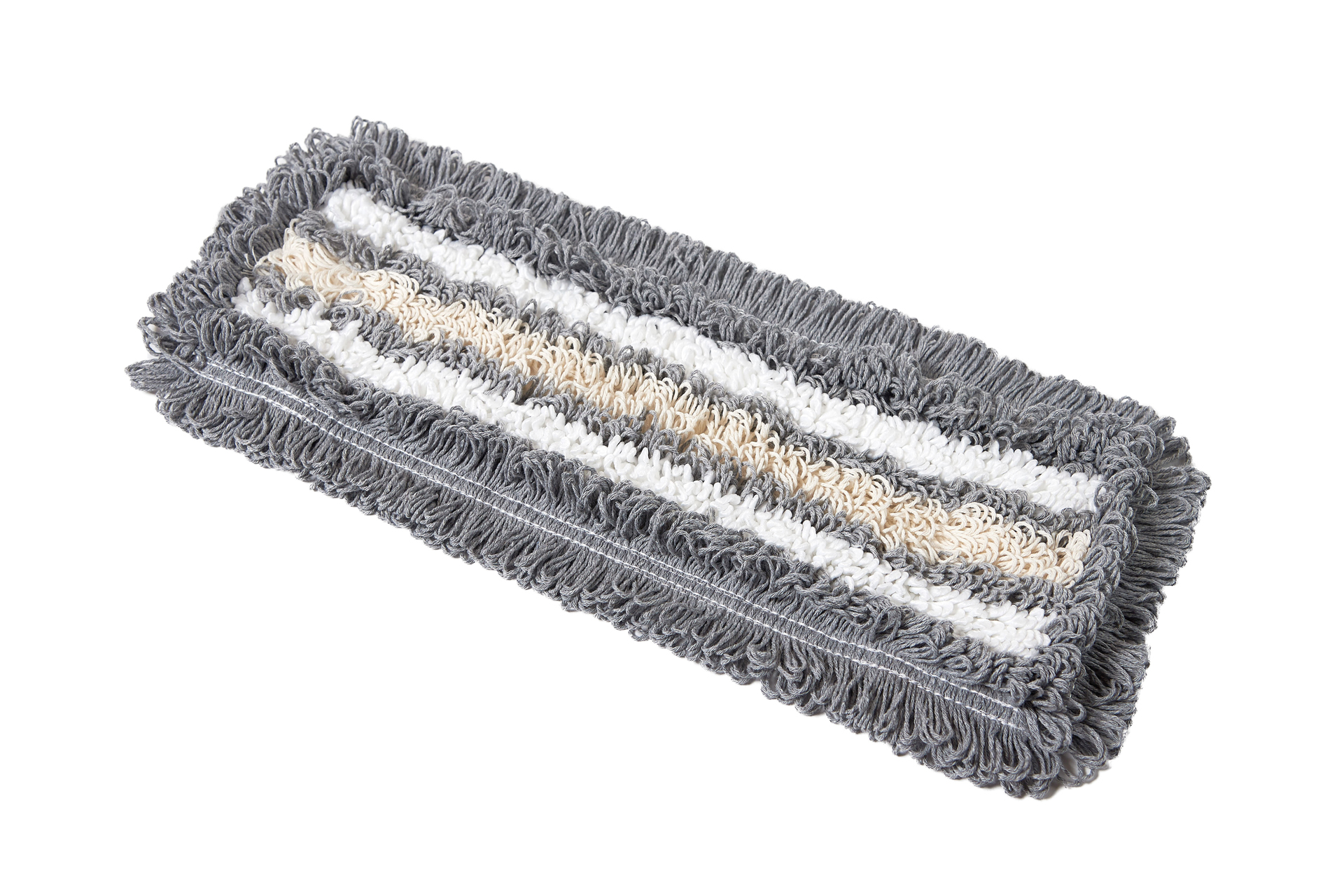 Cерая пряжа делает моп менее марким при длительной эксплуатации, а белые вставки из микроволокна позволяют следить за степенью загрязнения мопа. Отлично зарекомендовал себя при использовании на генеральных уборках, после строительных работ, а также при ежедневной поддерживающей уборке. Хорошо скользит по полу, легкий в работе.