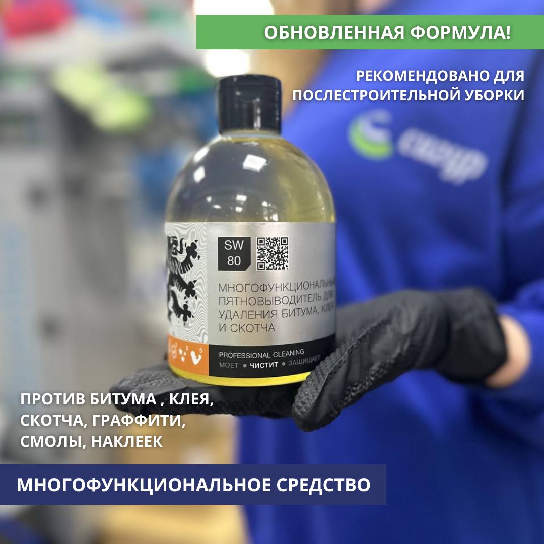 Обновленная формула состава Schtolzer SW80 с низкой текучестью средства позволяет работать локально по пятнам, существенно уменьшая риски повреждения соседних поверхностей при работе и снижая расход средства. Состав эффективен для точечной очистки поверхностей от следов клея и скотча, в том числе - наклеек, смолы деревьев, жевательной резинки, смазочных материалов, краски, следов дорожного реагента, пеня для пожаротушения, гидрофобизирующих и восковых покрытий, граффити. Высокоэффективно при проведении послестроительных уборок совместно со средством Schtolzer S15 на смешанных загрязнениях бетона и плиточного клея.