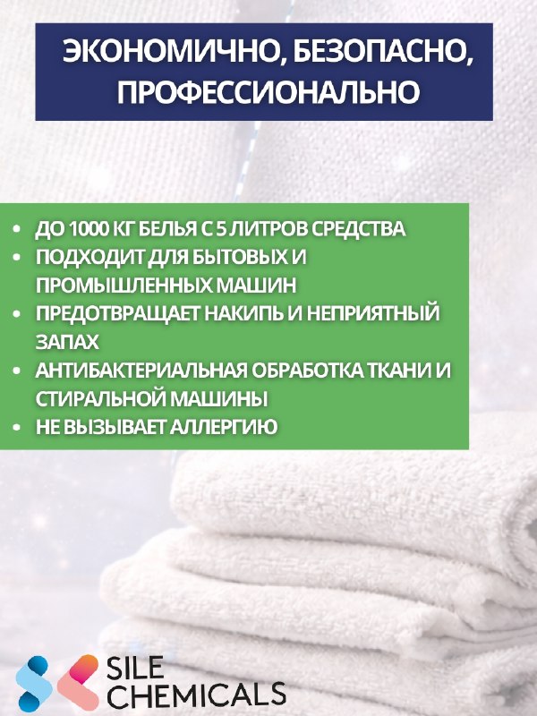 Используя 5 литров средства можно обработать до 1000 кг. белья.