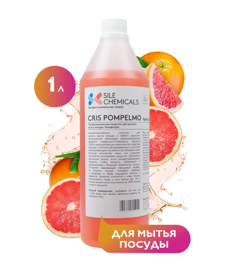 Sile Chemicals: CRIS POMPELMO (грейпфрут) Средство для ручного мытья посуды 1л.(6шт.кор)