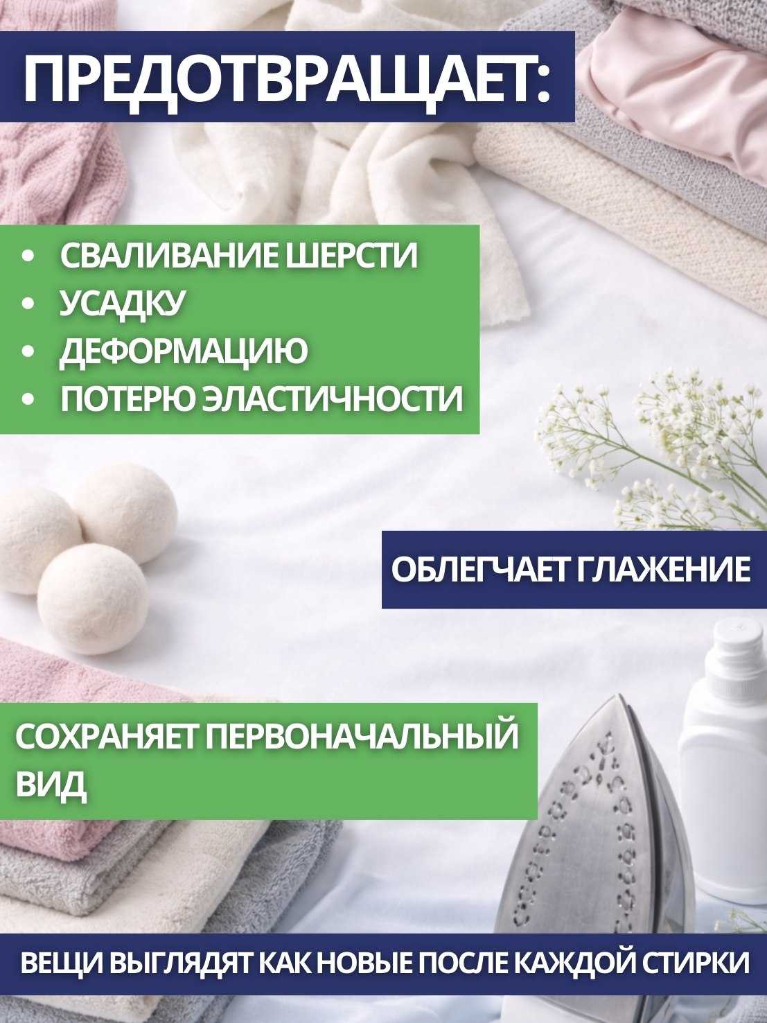 Предотвращает образование накипи, неприятного запаха, производит антибактериальную обработку как самих тканей, так и стиральной машины. Имеет нежный и приятный аромат. Не вызывает аллергию. Не наносит вреда окружающей среде.