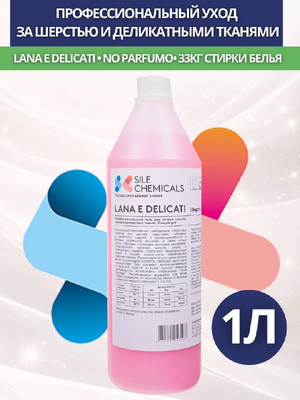 Sile Chemicals: LANA E DELICATI NO PROFUMO д/стирки шерсти, шелка и деликат.тканей 1л./6шт.