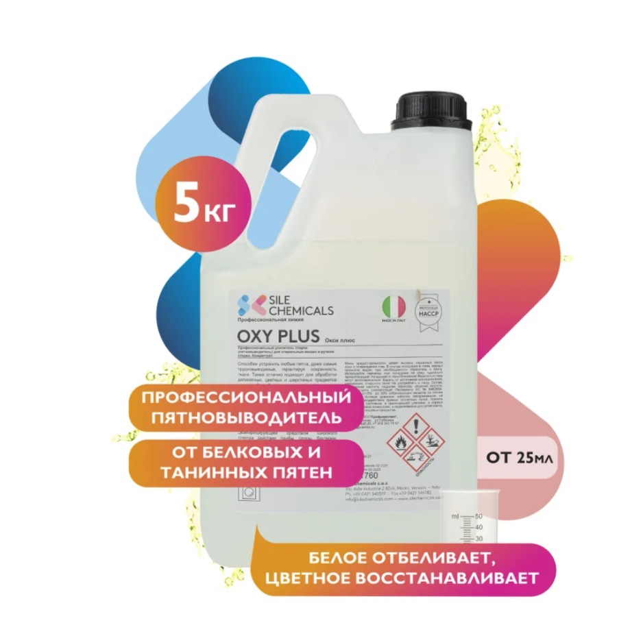 Sile Chemicals: OXY PLUS Усилитель стирки (отбеливатель и пятновыводитель) д/стиральных машин 5л.