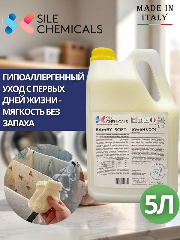Sile Chemicals: SOFT BAMBY NO PROFUMO Кондиц.-ополаскиватель для детского/б с первых дней жизни 5л.