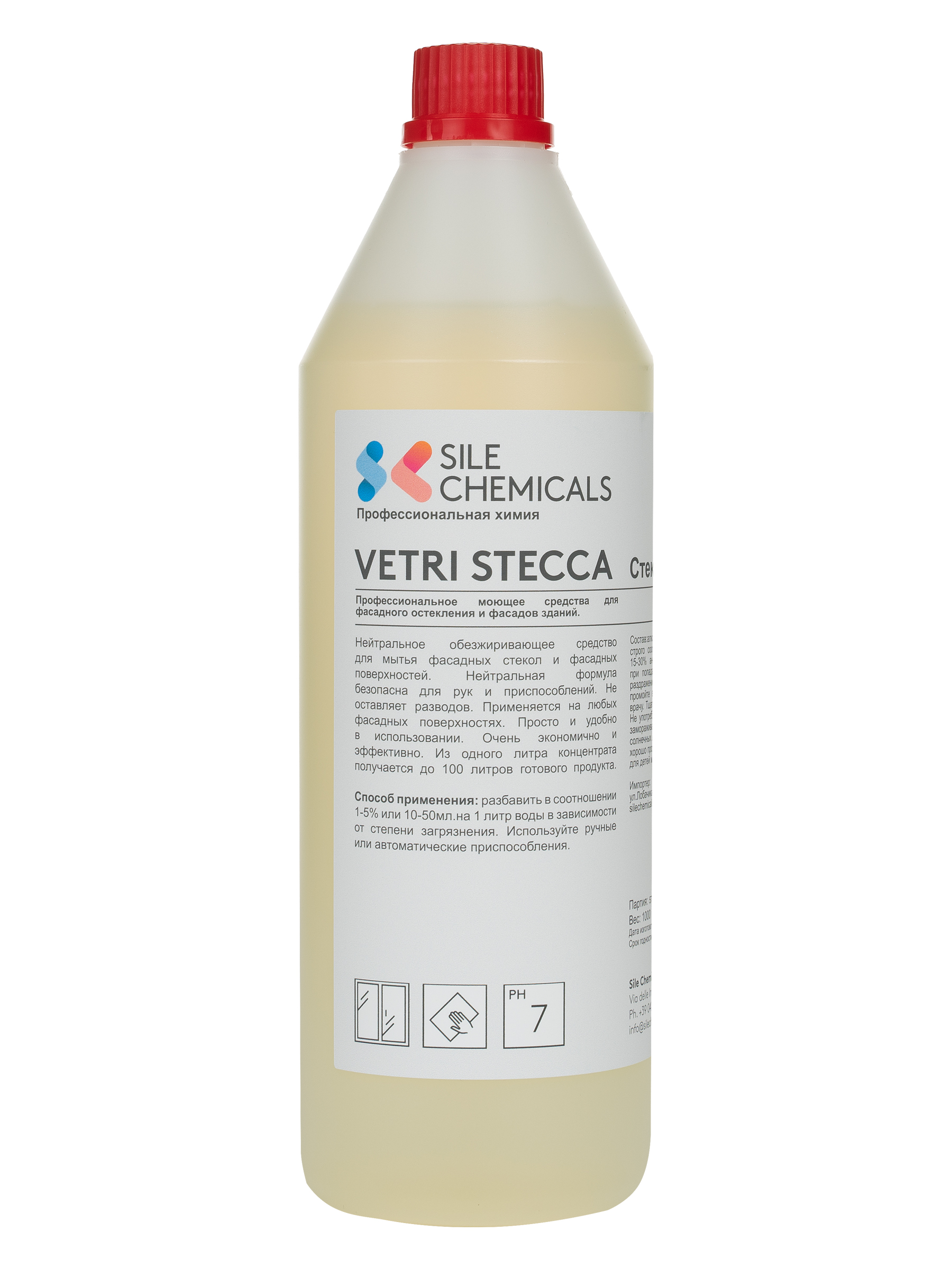 Sile Chemicals: VETRI STECCA Моющее средство для фасадного остекления и фасадов зданий 1л.