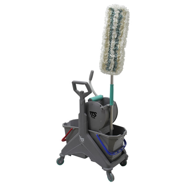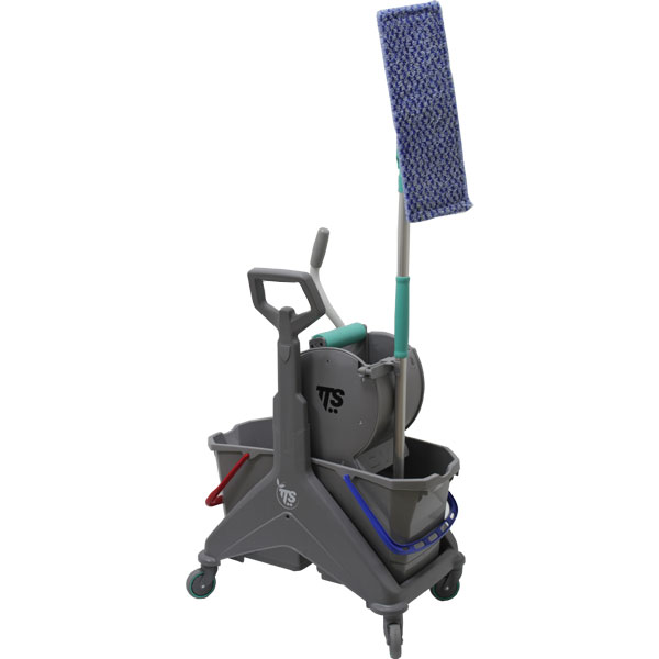 TTS:Тележка TTS NICKITA двухведёрная (15+15 Л) с отжимом TEC и боковой ручкой, серая база