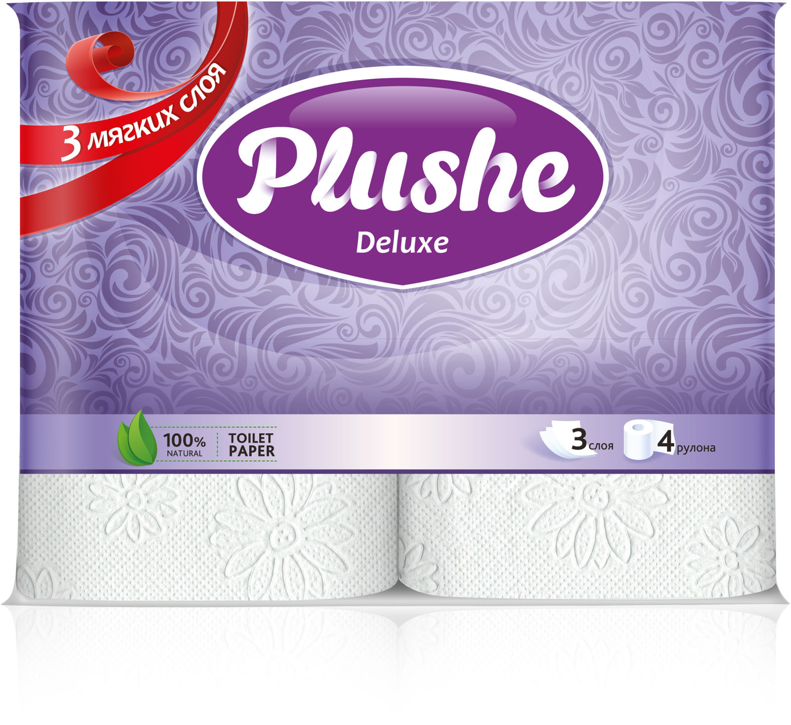 Туалетная бумага Plushe Deluxe Light 4рул*15м, 3сл, белый/12пач.в упак