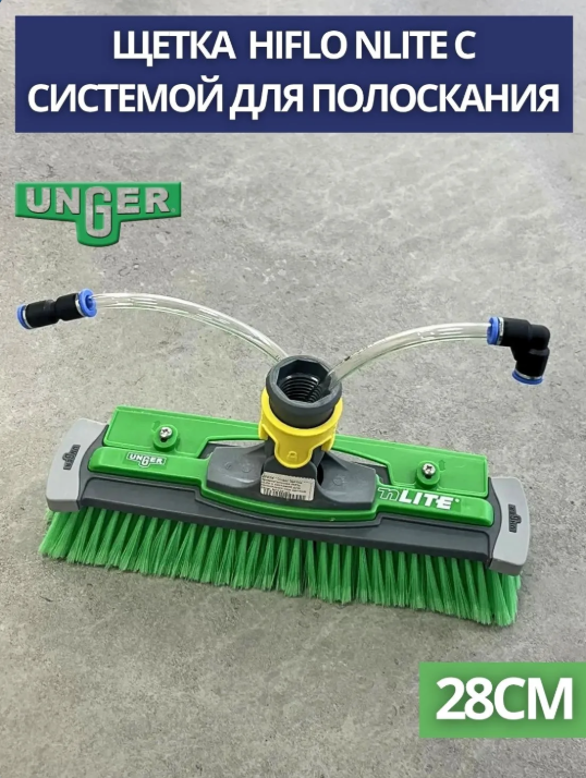 Unger: Щетка прямоугольная HiFlo nLite с системой для полоскания над щеткой 28см. NFK28