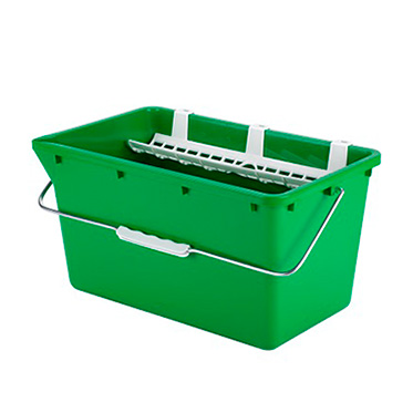 Ведро 18 литров предназначено для мытья окон. Изготовлено из ударопрочного пластика. На внутренней стороне ведра имеется мерная шкала для измерения объема воды или моющего раствора. Размер и форма ведра раcсчитаны на удобство погружения держателя с шубкой размером до 35 см для смачивания в моющем растворе. Ведро укомплектовано пластиковой отжимной решеткой для удаления с шубки лишнего количества моющего раствора, и держателями для сгона и держателя шубки. Раcсчитано на небольшие объемы работ.